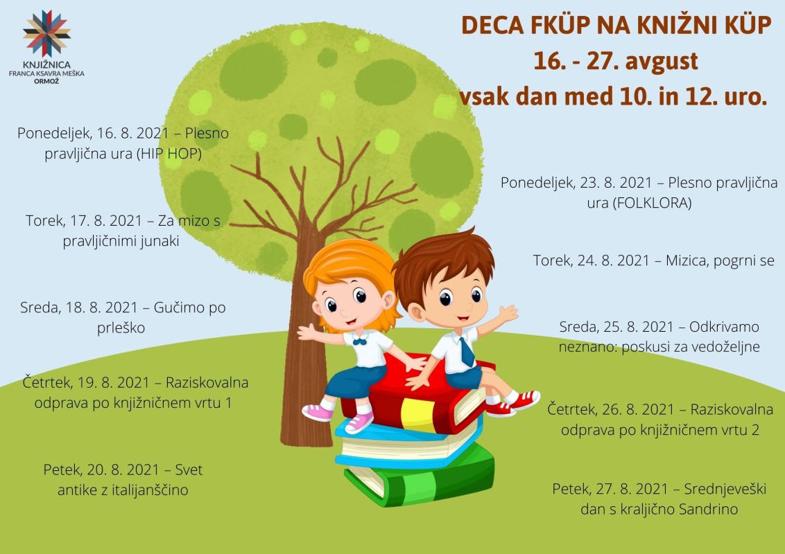Vabimo vas na dva tedna nepozabnih počitniških dogodivščin na vrtno teraso ormoške knjižnice. Že drugo leto zapored za vas pripravljamo program Deca fküp na knižni küp.