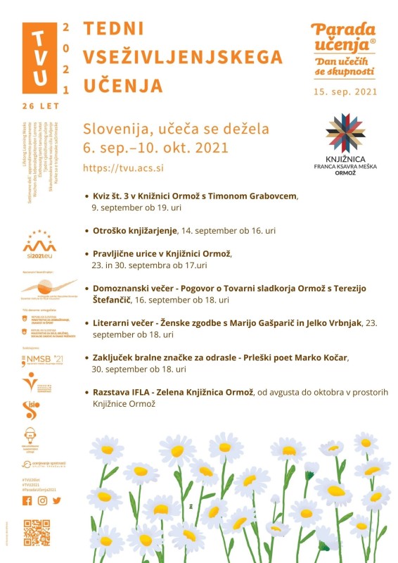 V letu 2021 se je Tednu vseživljenjskega učenja, ki letos v Ormožu poteka na temo ZELENO, torej v znamenju povezovanja z naravo, ohranjanja zelenega okolja in zdravega načina življenja pridružila tudi Knjižnica Ormož, ki že 7 let deluje kot ena prvih dveh zelenih knjižnic v Sloveniji.