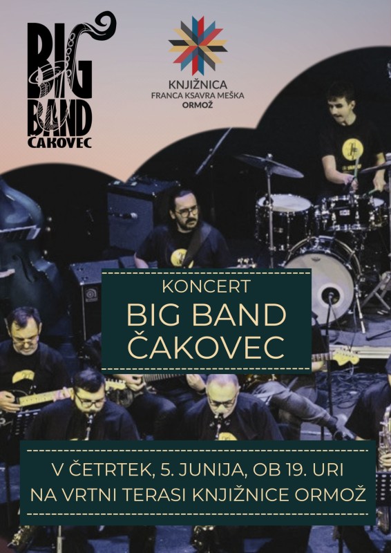 Vrtna terasa Knjižnice Ormož bo v četrtek, 5. junija 2025, ob 19. uri, zaživela v ritmih vrhunske jazz glasbe! V goste prihaja priznani Big Band Čakovec, ki letos praznuje 30 let delovanja.