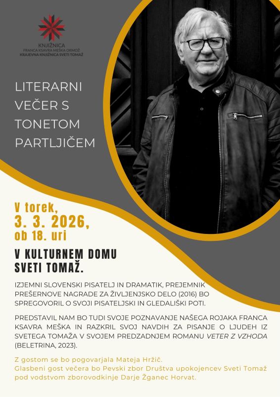 Literarni večer z izjemnim slovenskim pisateljem in dramatikom Tonetom Partljičem