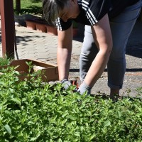 V letu 2021 smo knjižnične grede osvežili z novimi zelišči in zdravilnimi rastlinami, pri čemer so nam v veliko pomoč bili strokovnjaki tega področja, Matic Sever, Marko Viher in Ignac Janžekovič. Vsaka rastlina na našem vrtu je odslej označena tudi s tablico s svojim slovenskim in latinskim imenom. Na gredicah so zasajene: prava sivka, drobnjak, purpurni ameriški slamnik, hermelika, maroška klasasta meta, vrtna materina dušica, zdravilna špajka/baldrijan, navadni rožmarin, navadna melisa, žajbelj … Dela na knjižničnih gredah se po potrebi lotimo kar vsi zaposleni v knjižnici, vključno z vodstvom.