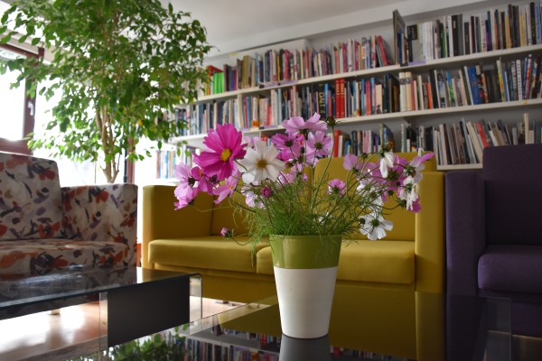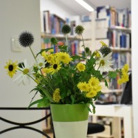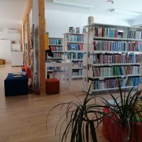 Tudi v prenovljenih notranjih je poudarek na »zelenem«. Skoraj v vsakem prostem kotičku se najde kakšna zelena lončnica. Zaposleni poskrbijo tudi za sveže šopke s cvetličnih knjižničnih gred, ki pripomorejo k boljšemu počutju obiskovalcev in uporabnikov storitev ter zaposlenih.