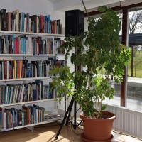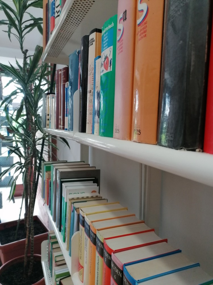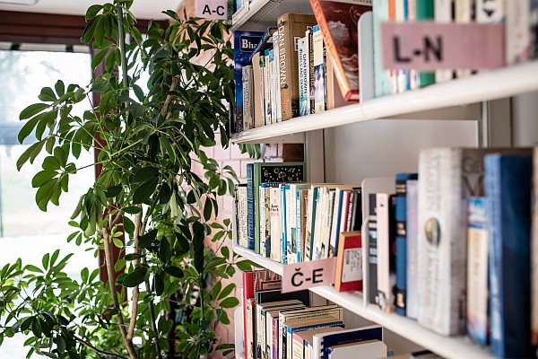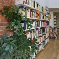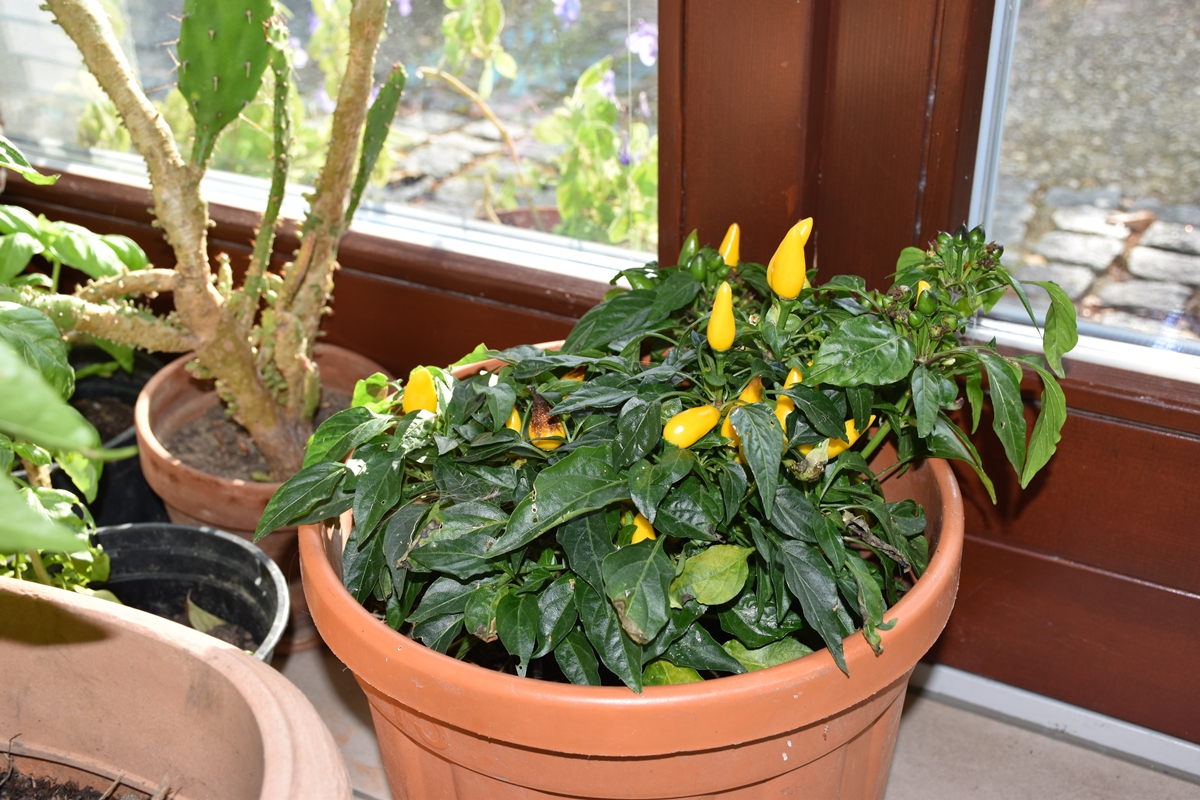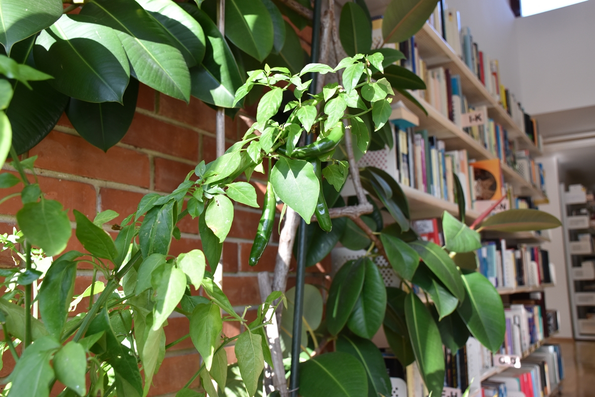 V letu 2022 smo med knjižnimi policami gojili čilije in feferone, ki smo jih pridelali s semeni naše knjižnice semen.