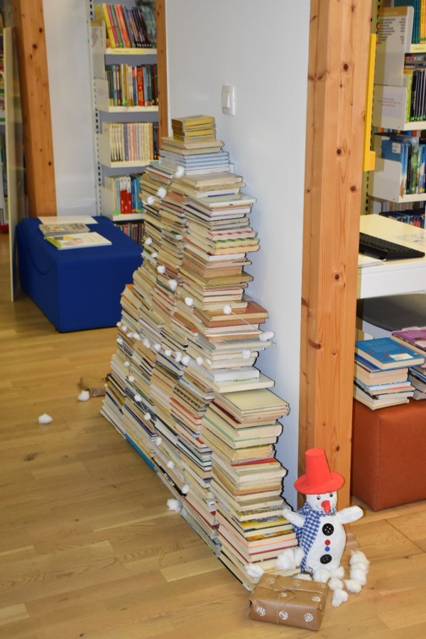 Odpisane knjige, ki niso več primerne za izposojo, se oddajo v knjigobežnice ali se ponovno uporabijo na domiselne načine. Eden takšnih je uporaba knjig za izdelavo božičnih smrek. Vsako leto se v prostoru izposoje postavi smrečica iz knjig in okrasi kakšna izmed naših okrasnih rastlin.
