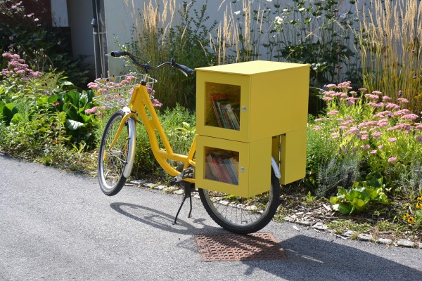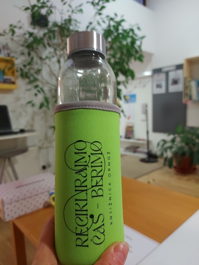 Za potrebe prevoza knjižničnega gradiva iz knjižnice v arhiv in občasno kot potujočo knjižnico uporabljamo podarjeno odsluženo poštno kolo. Zaposlene se spodbuja, da na delovno mesto prikolesarijo ali hodijo peš, ne z avtomobili.