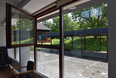 Na jug orientirana stavba in velike steklene površine omogočajo učinkovito izrabljanje naravne svetlobe, s čimer se zmanjšuje potreba po umetni razsvetljavi. Zasajeno listopadno drevje na jugozahodni strani skrbi za naravno senčenje. Zgodnje jutranje poletno prezračevanja omogoča redko uporabo klimatskih naprav. V času epidemije COVID-19 smo tudi na ta način, z rednim naravnim zračenjem ohranjali zdravje naših obiskovalcev in zaposlenih.